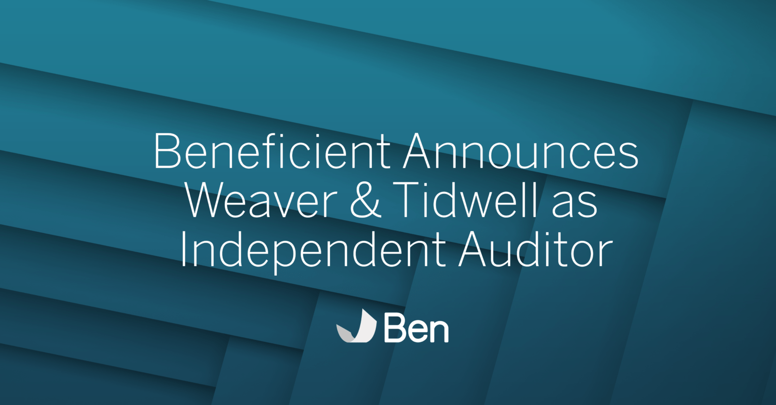 DALLAS- May 13, 2022 – Beneficient is pleased to announce that it has hired the well-known and respected auditing firm, Weaver & Tidwell, L.L.P., as its new independent auditor. Headquartered in Houston and with offices throughout Texas and the U.S., Weaver provides audit and tax services to over 1,000 financial firms, with services ranging from financial audits, compilations, reviews, and more.