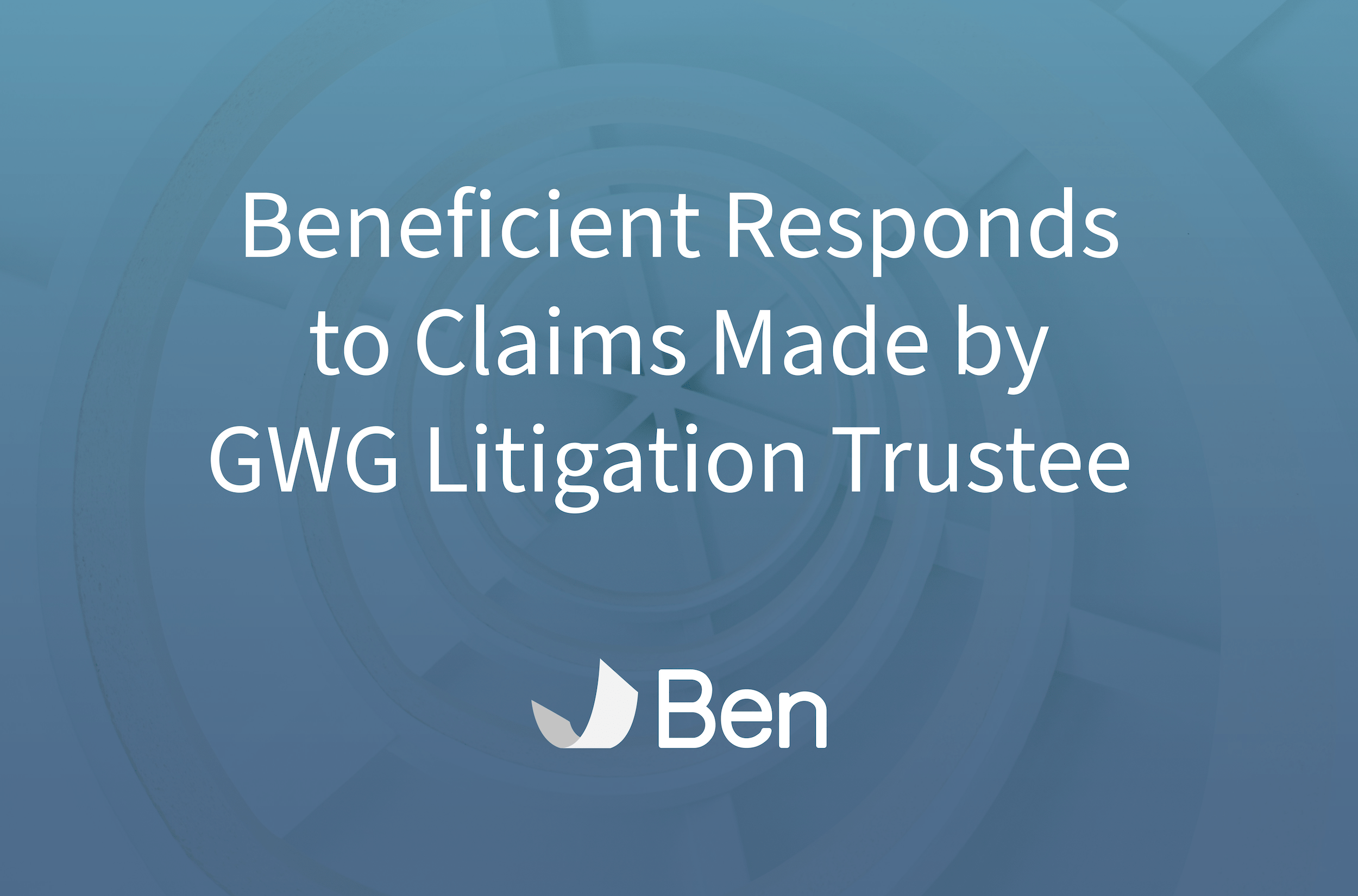 The GWG Litigation Trust was formed as part of the resolution of the GWG bankruptcy and has the right to investigate, litigate, settle, or abandon potential claims previously held by the GWG bankruptcy estate. The sole beneficiary of the GWG Litigation Trust is the GWG Wind Down Trust, which was created along with the GWG Litigation Trust, and holds shares in Beneficient.