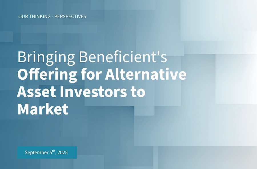 At the same time, no firms have brought to market scalable, tech-enabled, solutions that complete the democratization of alternative assets whereby investors of all sizes benefit from enhanced trust and custodial services, more robust reporting, and early exit solutions for their alternatives, all from a single provider and platform. Beneficient was created to deliver these capabilities to the marketplace as a solution for what we identified early on as a market primed for reinvention and significant growth.