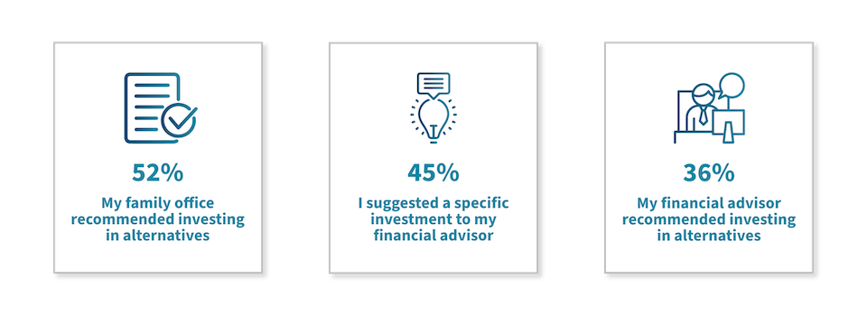 Some findings in The Ben Liquidity Report seem to indicate that MHNW investors prefer a high level of interactivity with their wealth manager or family office. For example, when asked to describe the circumstance(s) which led them to invest in alternative assets, respondents gave the following answers: