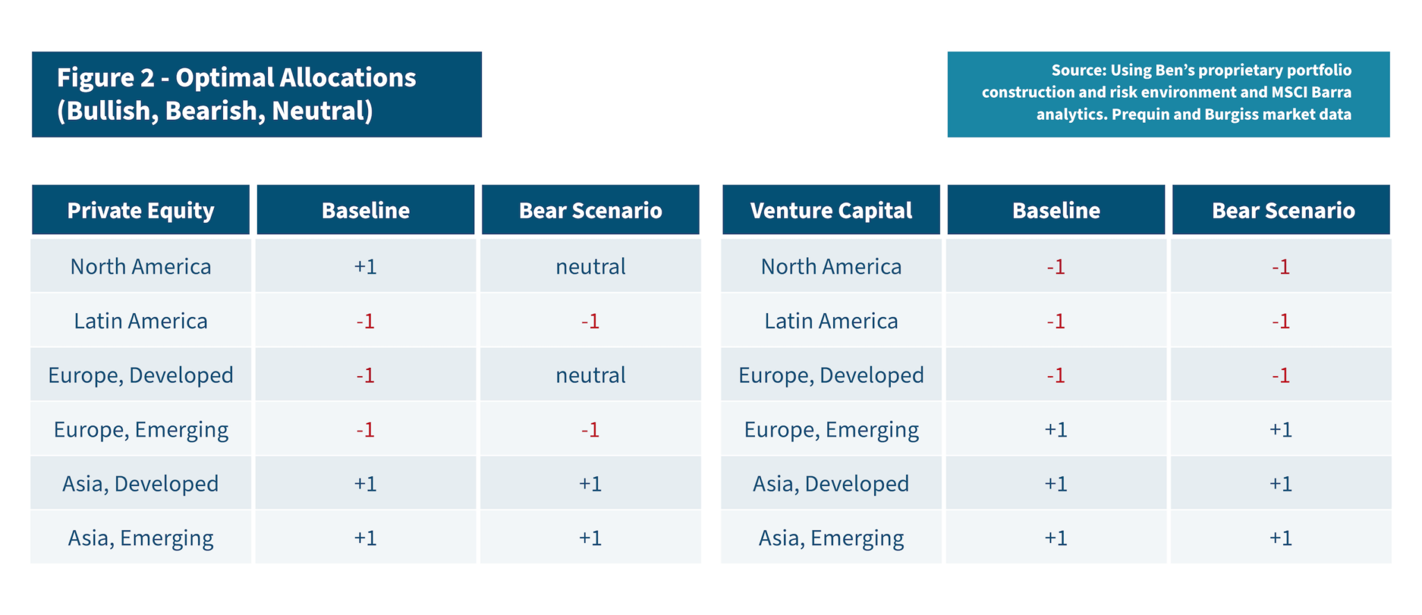 To demonstrate the benefits of geographic diversification in private assets, we illustrate opportunities available to investors with broad market access and secondary liquidity options to rebalance their portfolio. A key component of a healthy portfolio is the ability to actively rebalance based on available risk/reward trade-offs across market exposures, economic development and geographies. We analyze private equity investments (buyouts/growth funds as a key private market asset class) under our baseline/downside scenarios and propose how to best use their respective characteristics across regions to develop strategic portfolio allocations. This seeks to optimize risk-adjusted performance while preserving good protection against downside events.